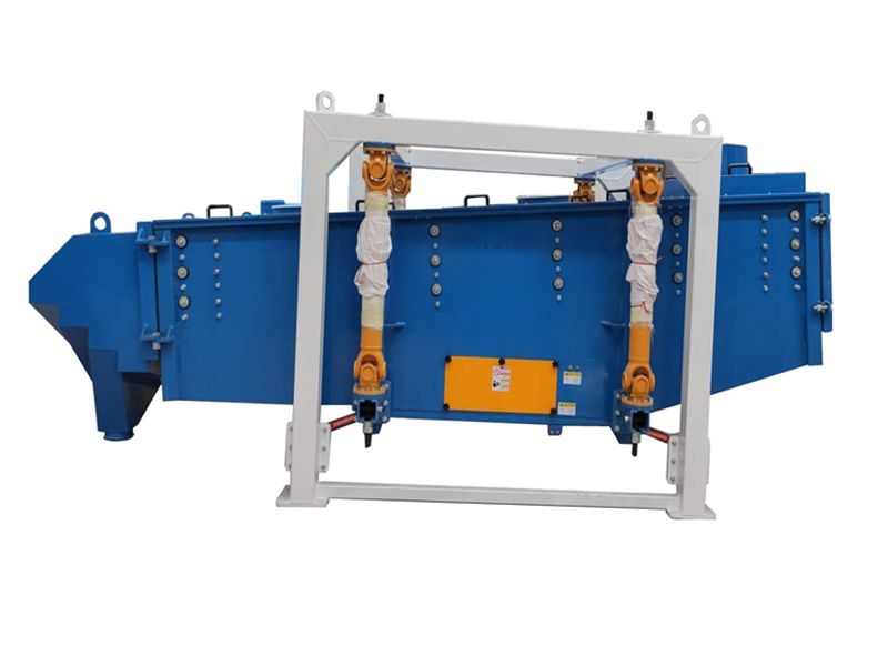 篩機(jī)啟動(dòng)后,篩機(jī)搖動(dòng)體即篩箱在慣性力的作用下做前后往復(fù)運(yùn)動(dòng),篩箱帶動(dòng)篩面作周期性搖動(dòng),從而使篩面上的物料隨篩箱一同作定向跳躍式運(yùn)動(dòng),期間,小于篩面孔徑的物料通過(guò)篩孔落到下層,成為篩下物,大于篩面孔徑的物料經(jīng)連續(xù)翻滾跳躍運(yùn)動(dòng)后從排料口排出,從而完成篩分工作。